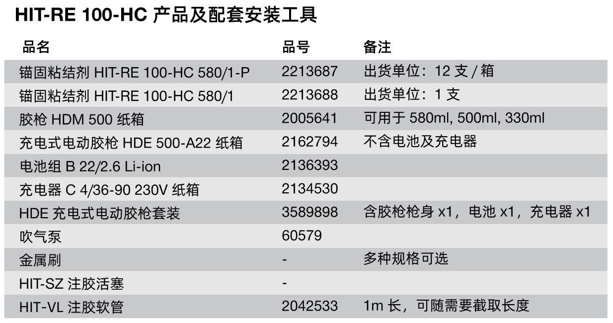 產(chǎn)品名稱:RE100-HC 喜利得植筋膠